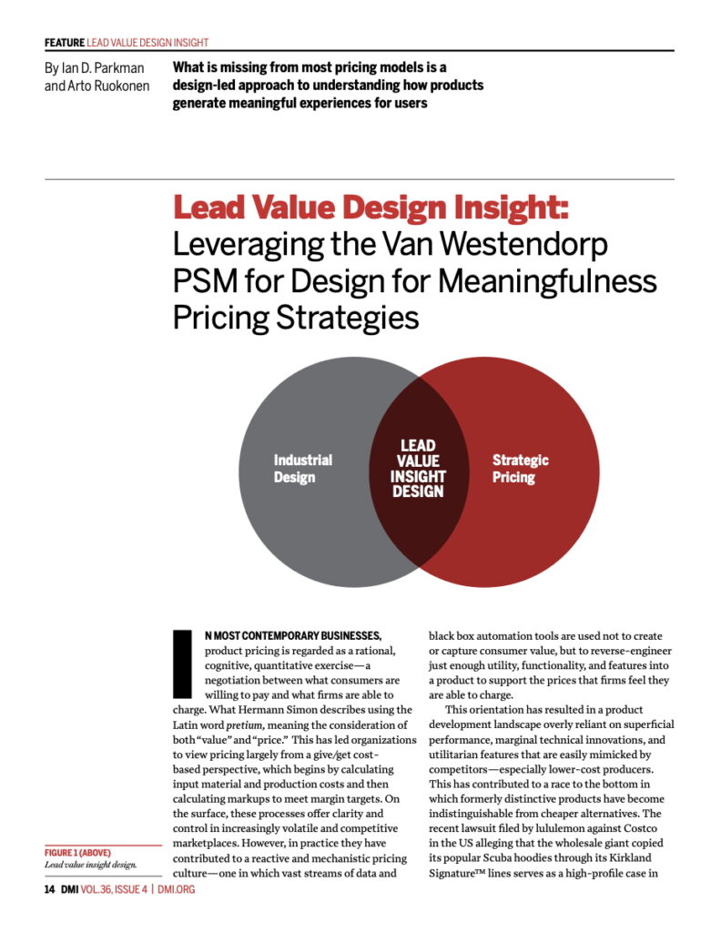 Useimmista hinnoittelumalleista puuttuu näkökulma siihen, miten tuotteet synnyttävät käyttäjille merkityksellisiä kokemuksia. Useimmat yritykset käsittelevät hinnoittelua yhä ennen kaikkea laskuharjoituksena: ensin lasketaan materiaalit, tuotanto, logistiikka ja tavoitemarginaali […]